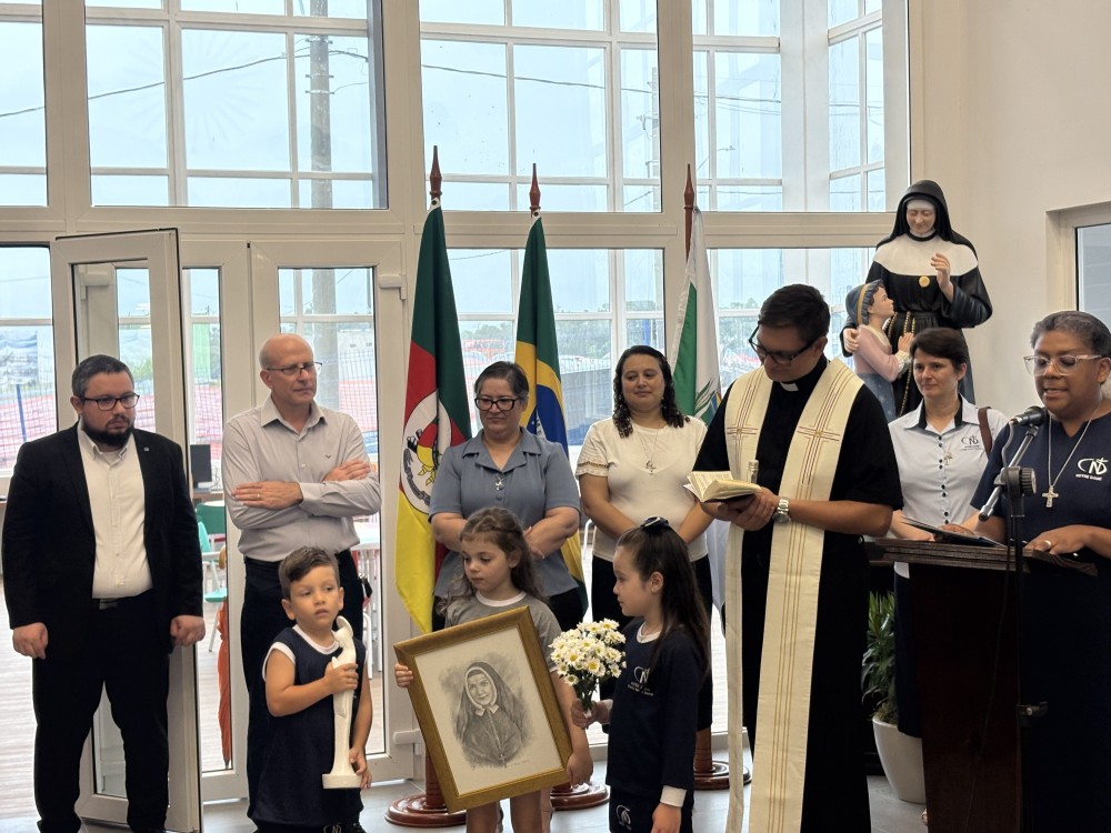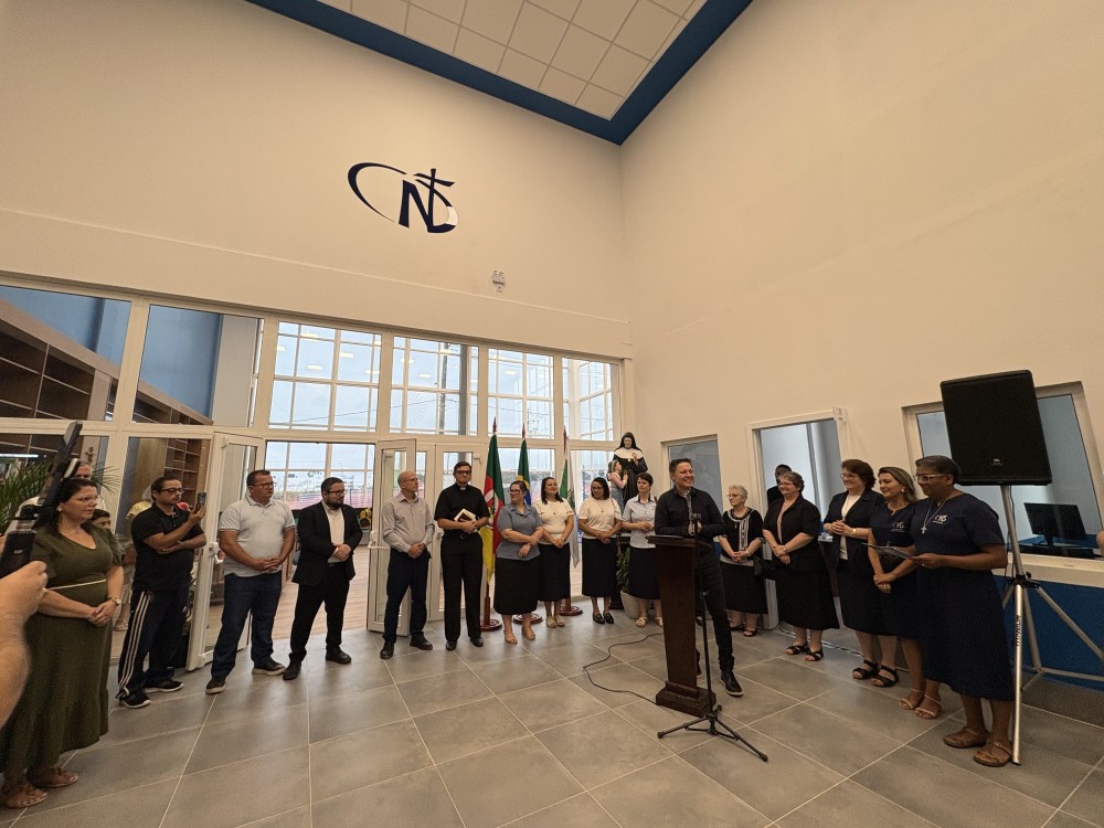 O prefeito de Nova Santa Rita, Rodrigo Batistella, também participou da cerimônia e destacou a inauguração da nova estrutura da Escola Notre Dame como uma forma significativa de iniciar o ano. Ex-aluno da Rede Notre Dame, no Colégio Maria Auxiliadora, em Canoas, Batistella ressaltou a importância do investimento em educação para o desenvolvimento do município, afirmando que o futuro de uma cidade começa pela formação de suas crianças e jovens. Ao recordar sua trajetória e ao contemplar a imagem de Santa Júlia Billiart, o prefeito destacou ainda o valor da fé e da missão educativa das Irmãs de Notre Dame.