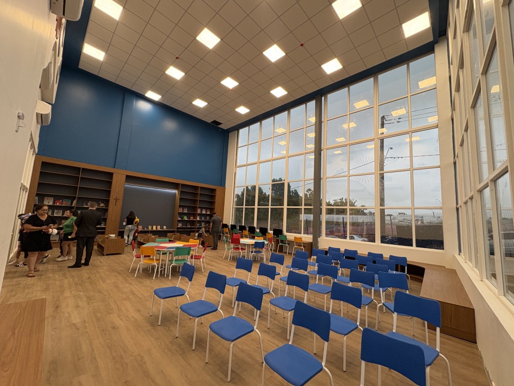 O novo espaço foi projetado para favorecer o desenvolvimento integral dos alunos, contando com ambientes pedagógicos diferenciados, biblioteca ampla, quadra esportiva, áreas verdes, capela e espaços de convivência pensados para o aprendizado, a formação humana e a vivência de valores.