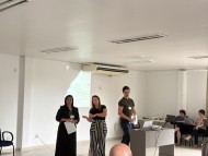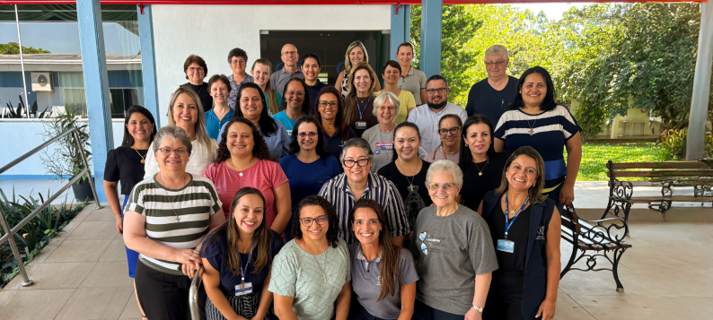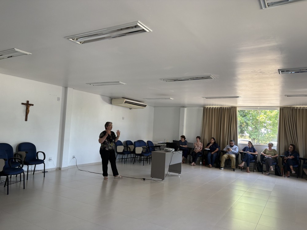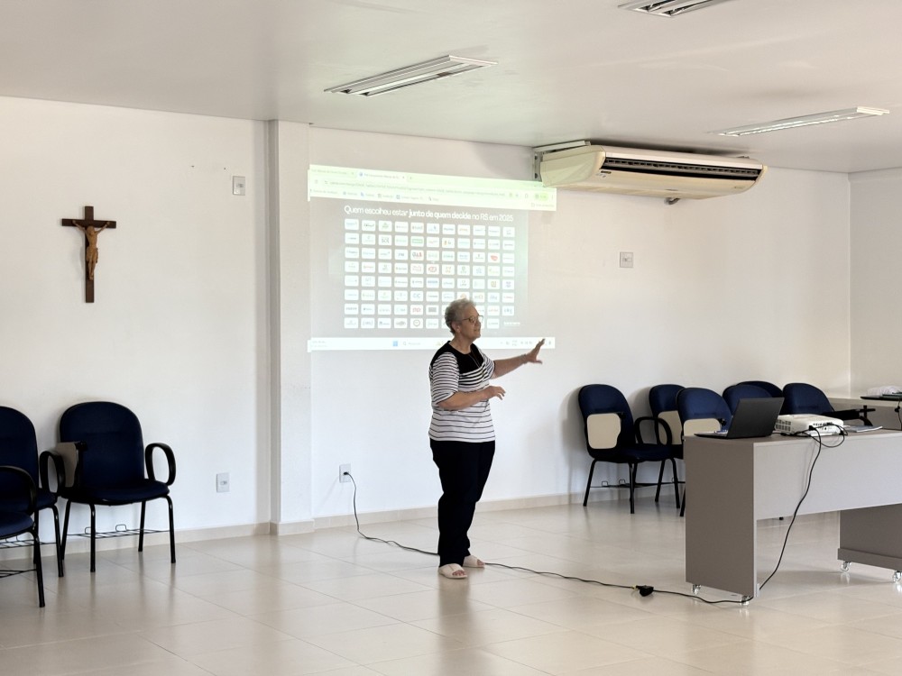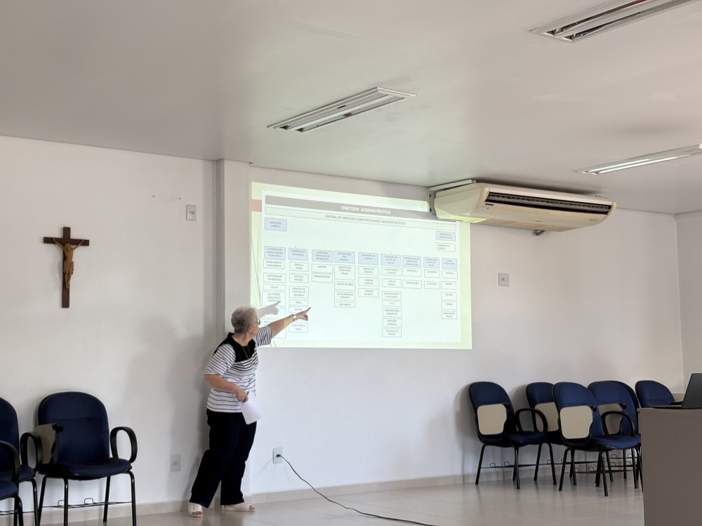 A governança corporativa também esteve em destaque no Encontro. A 1ª Conselheira e Assistente Provincial, Irmã Rosa Maria Hoelscher, falou sobre este momento de aproximação e integração entre as irmãs e os colaboradores das antigas províncias. Na sequência, a Ecônoma Provincial, Irmã Maria Helena Rovani, apresentou a Central de Serviços Compartilhados e o modelo de governança corporativa desenvolvido na sede, em Passo Fundo, reforçando a organização dos processos e a atuação integrada.